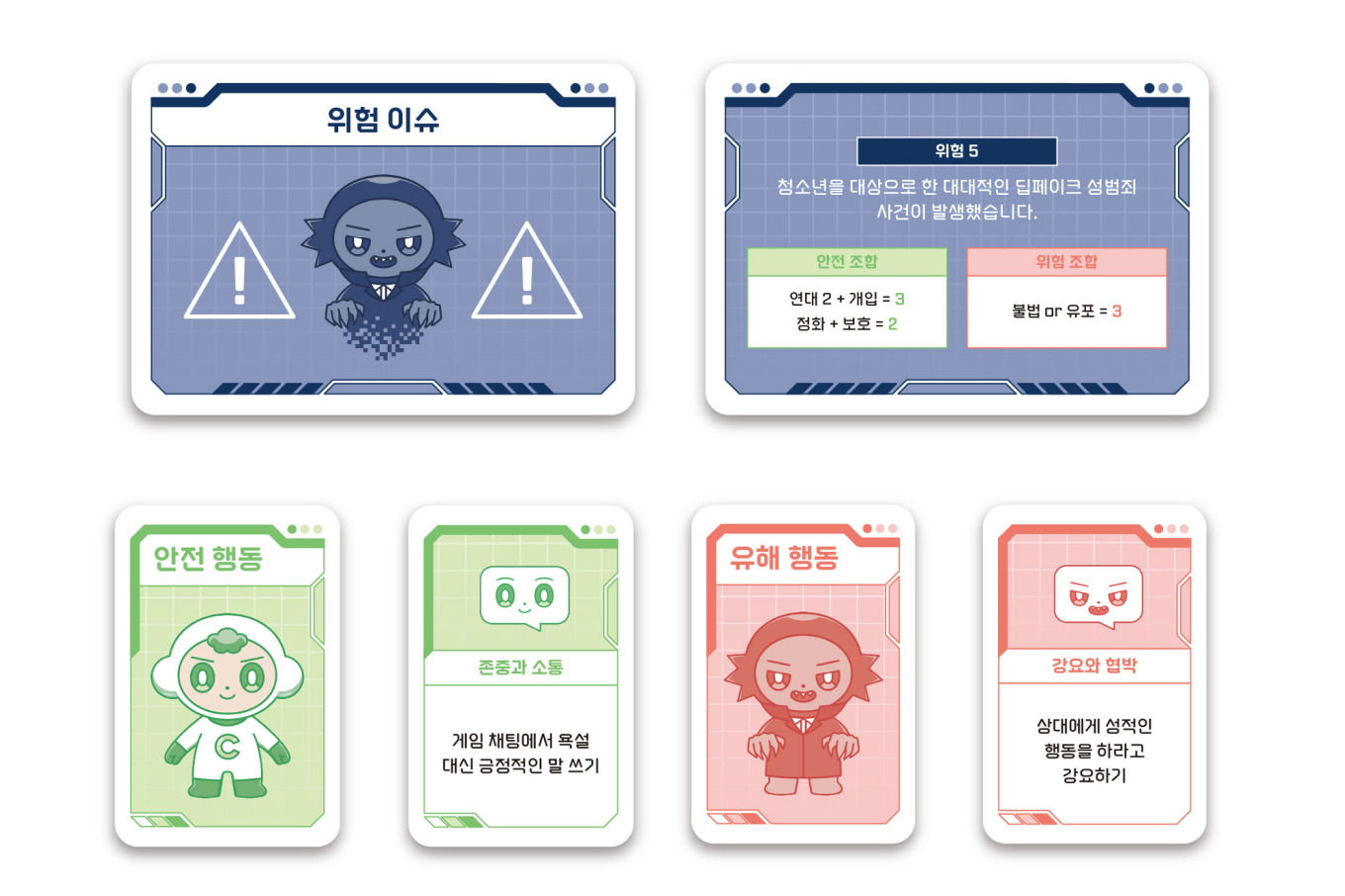 이 보드게임은 청소년들이 즐겁게 놀이를 하며 ‘디지털 공간에서의 안전’, ‘경계존중’, ‘성적 권리’의 개념을 자연스럽게 익힐 수 있도록 구성되었습니다.