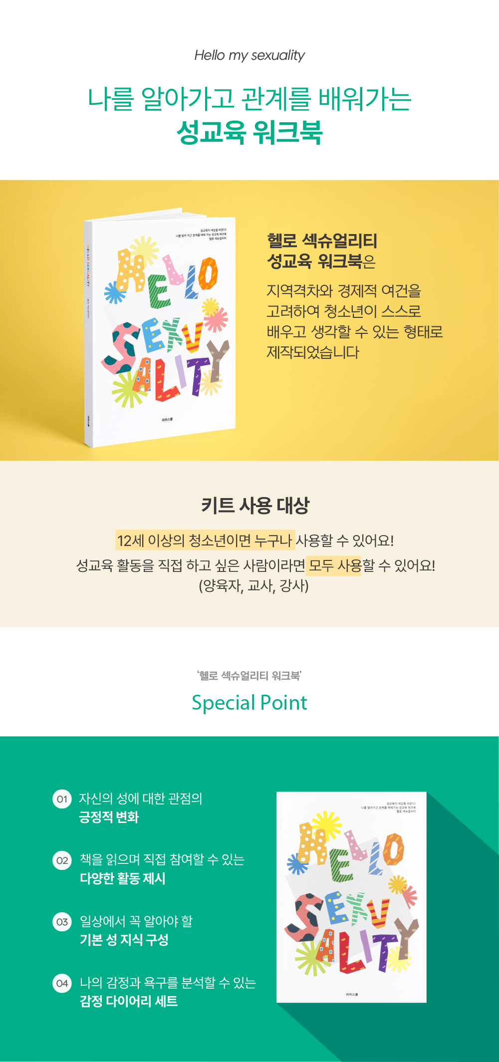 헬로섹슈얼리티 성교육 워크북은 누구나 쉽게 성교육에 접근할 수 있도록 할 수 있는 워크북 형태로 구성되어 있습니다.